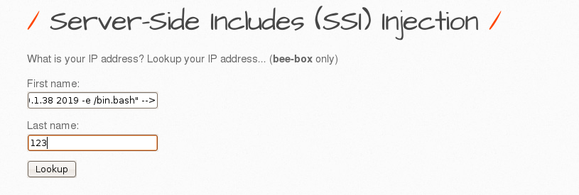 bee-box에 들어가서 Server-Side Includes(SSI) Injection 선택 후 hack을 누르면