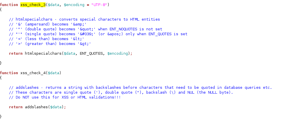 먼저 xss_check_3에 적용되어 있는 htmlspecialchars 함수는 php code injection에서 이미 설명했다.