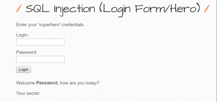 Login Form / Hero 페이지(sqli_3.php)에 들어가면