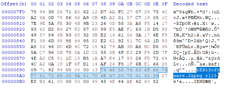 맨밑에 .tEXtSoftware.Japng r119라는 글자가 있다.