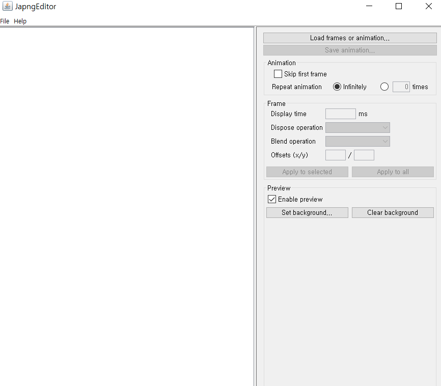 다음과 같은 에디터가 나오는데 여기서 Load frames or animation을 누르고 다운받은 이미지 파일을 열면