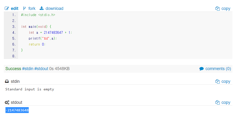 다음과 같이 -2147483648이 나온다.