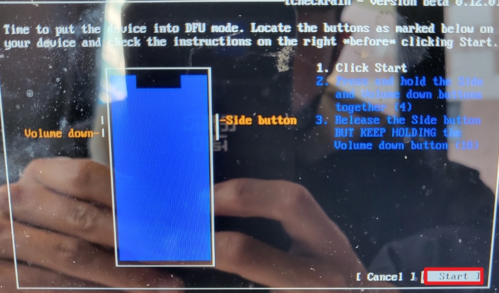F10을 눌러 저장 후 나가고 컴퓨터 및 노트북이 부팅이 되면 다음과 같은 화면이 출력이 되는데 Alt + F2를 눌러 checkra1n GUI모드로 들어간다.