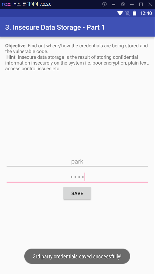 입력 정보가 어딘가에 저장되었다는 Toast 메시지를 볼 수 있다.