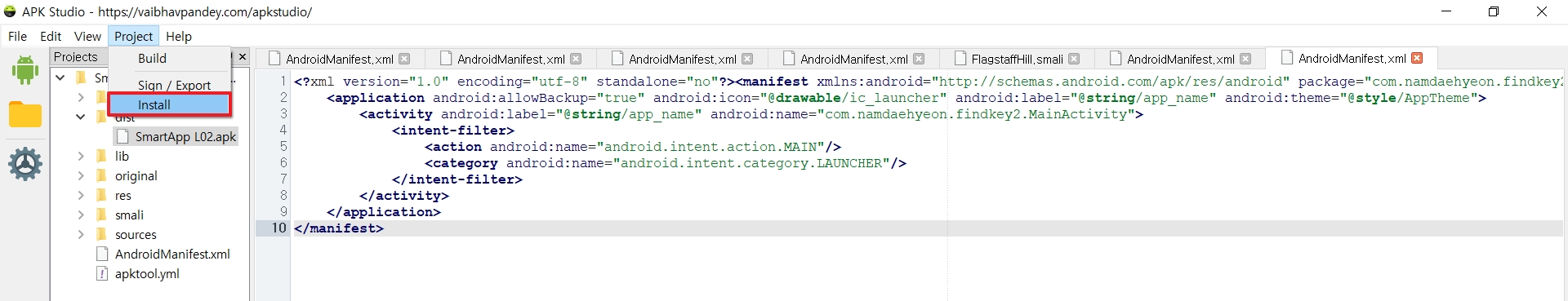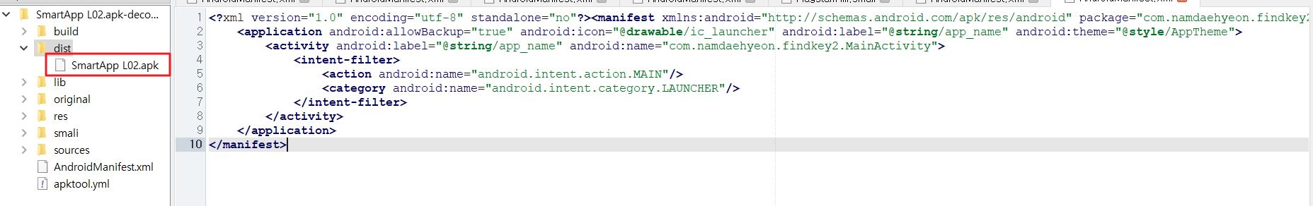 그래서 APK Studio를 켜서 디컴파일을 해주기로 했다.
