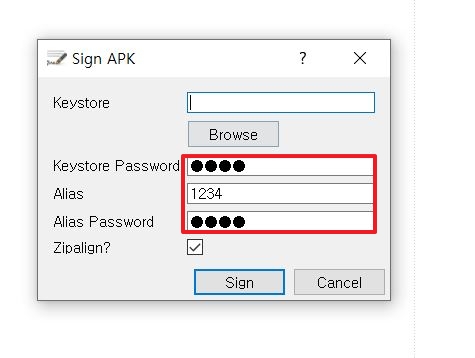 이 3가지를 임의의 값으로 설정해주고 sign을 해준다.