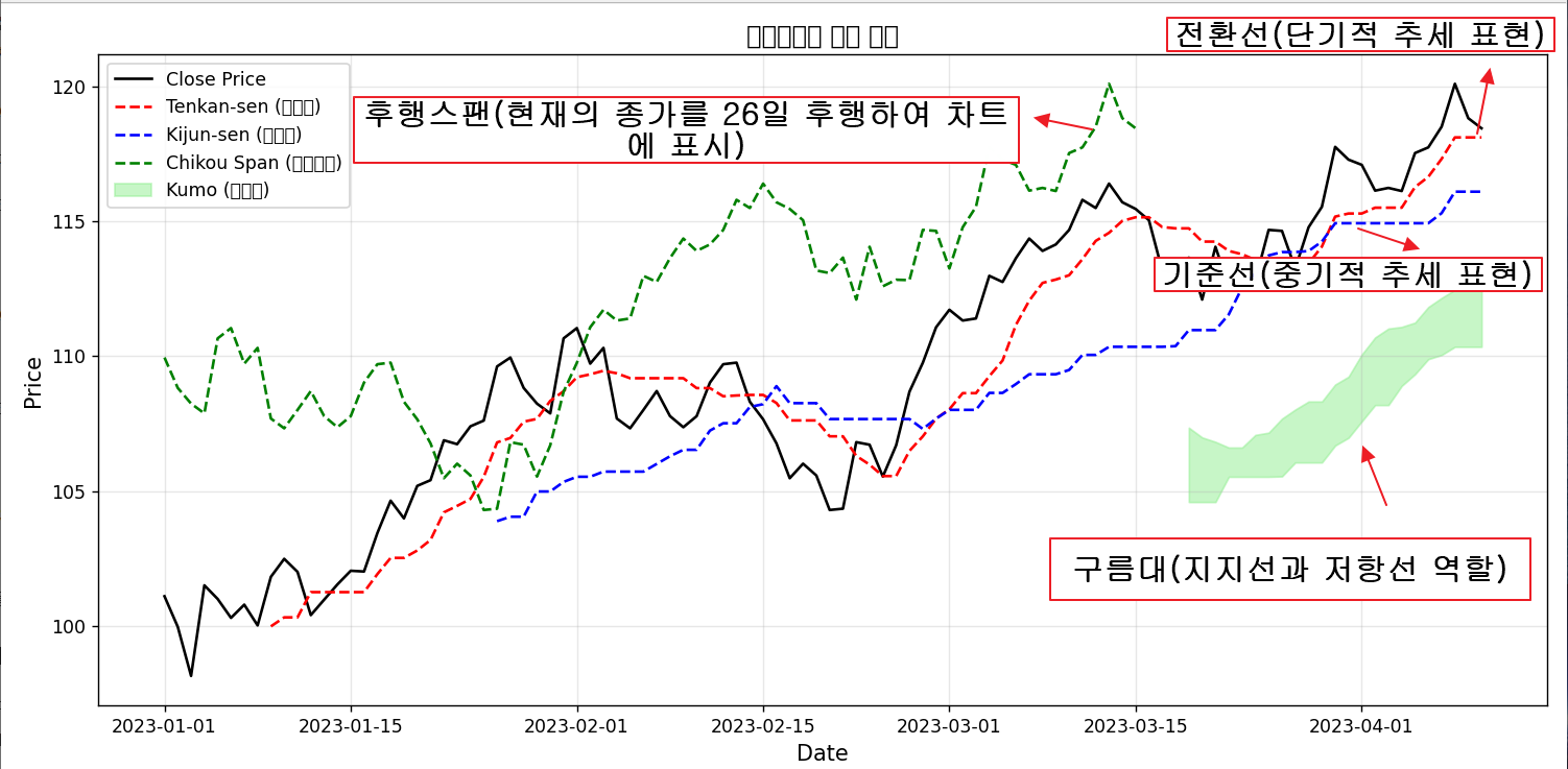 - 일목균형표에서는 구름대(Kumo)를 볼 수 있다.